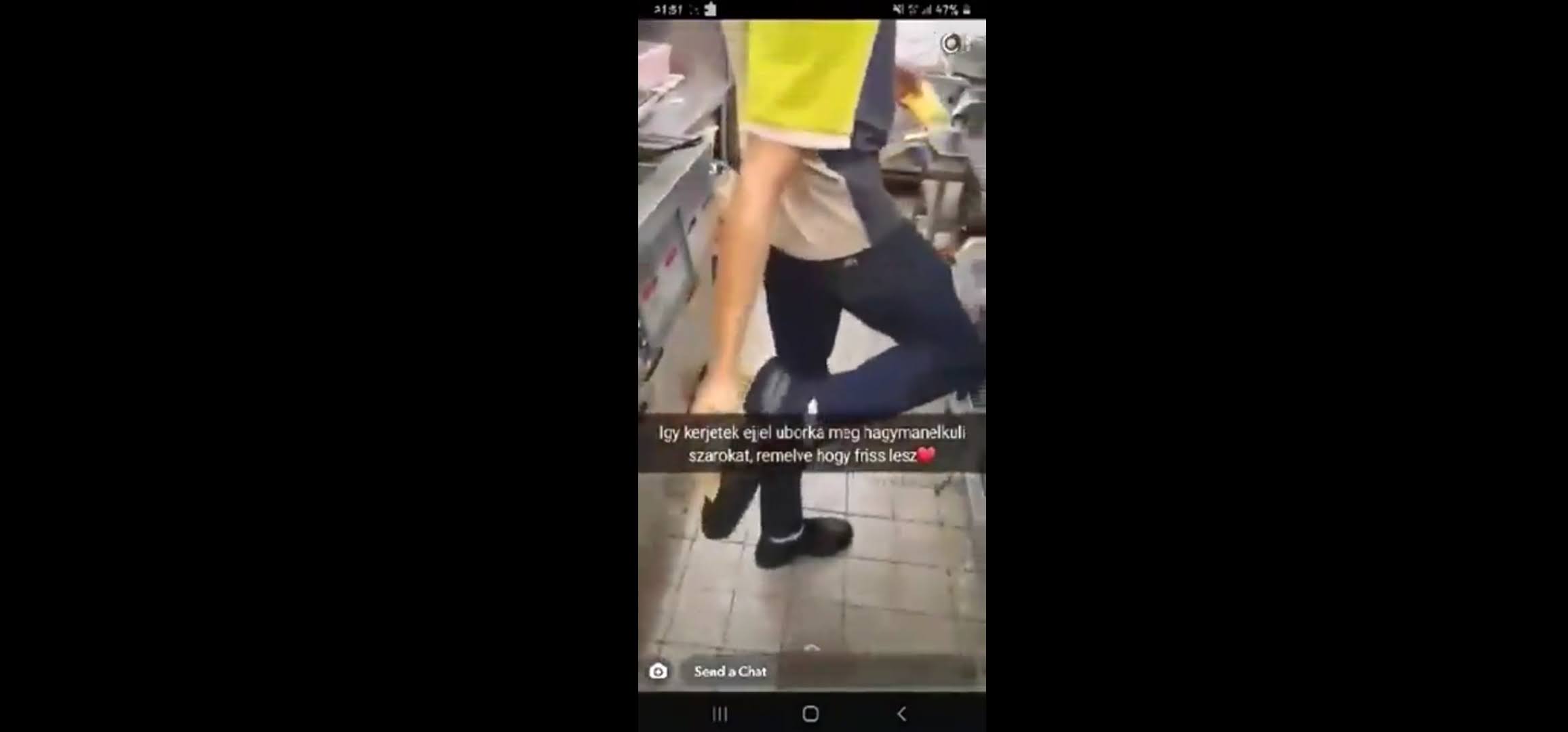 8月9日发生在匈牙利麦当劳的完全相反, 在他的夜班, 1名厨房工人正在以一种可耻的恶心方式准备汉堡包, 写 库鲁克信息.