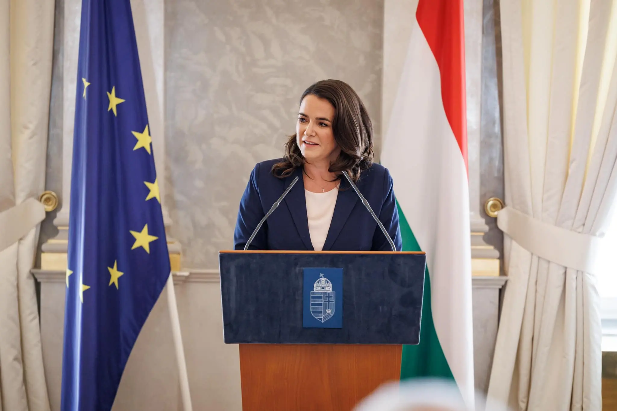 恩(Viktor Orbán)总理的想法,选举她为匈牙利第一位女总统,之前她曾担任负责家庭事务的欧尔班内阁国务秘书和部长,再者,她是青民盟的副领导人,她是极受欢迎的匈牙利政治人物,丑闻爆发前她的支持指数甚至达到60%,但丑闻爆发后,有民调显示,超过70%的匈牙利人表示她应该辞职。