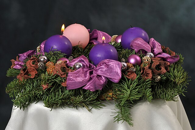 1800年代由汉堡牧师制作的第一支降临节花环,现今降临节花环是圆形的,通常由(或被)松枝和四支蜡烛制成,在天主教家庭中,这些蜡烛通常是紫色的,除了象征第三个星期日的蜡烛是粉红色的,降临节的每个星期日都会点燃一根新的蜡烛,象征上帝不断增多的光芒,最后一个星期日,降临节花环的四支蜡烛全部点燃。