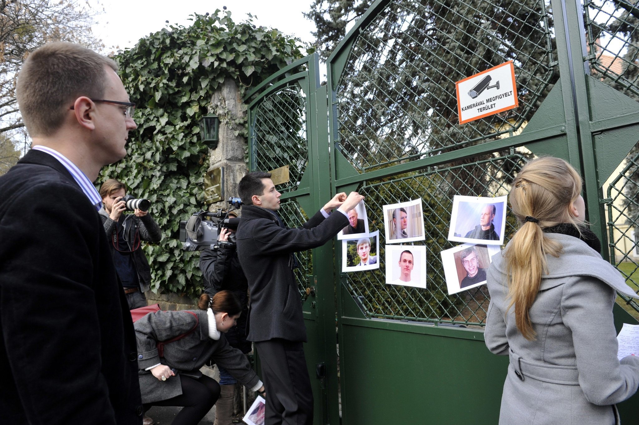 活动结束时,与会者将几名白俄罗斯政治犯的照片钉在大使馆的栅栏上。