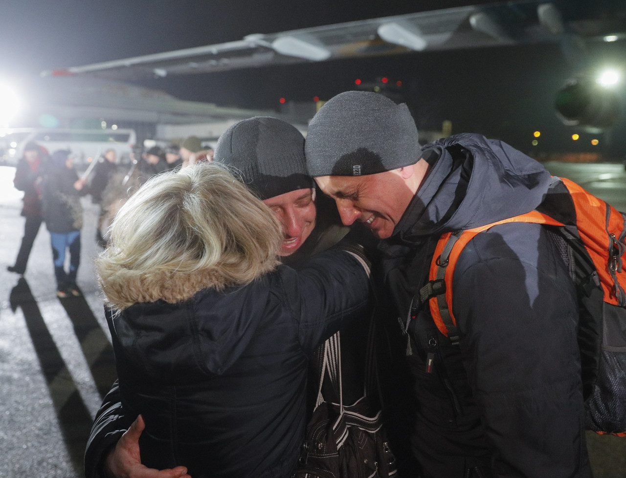 76名俘虏,即12名军事人员和64名平民,于周日晚上抵达基辅附近的鲍里斯波尔机场。