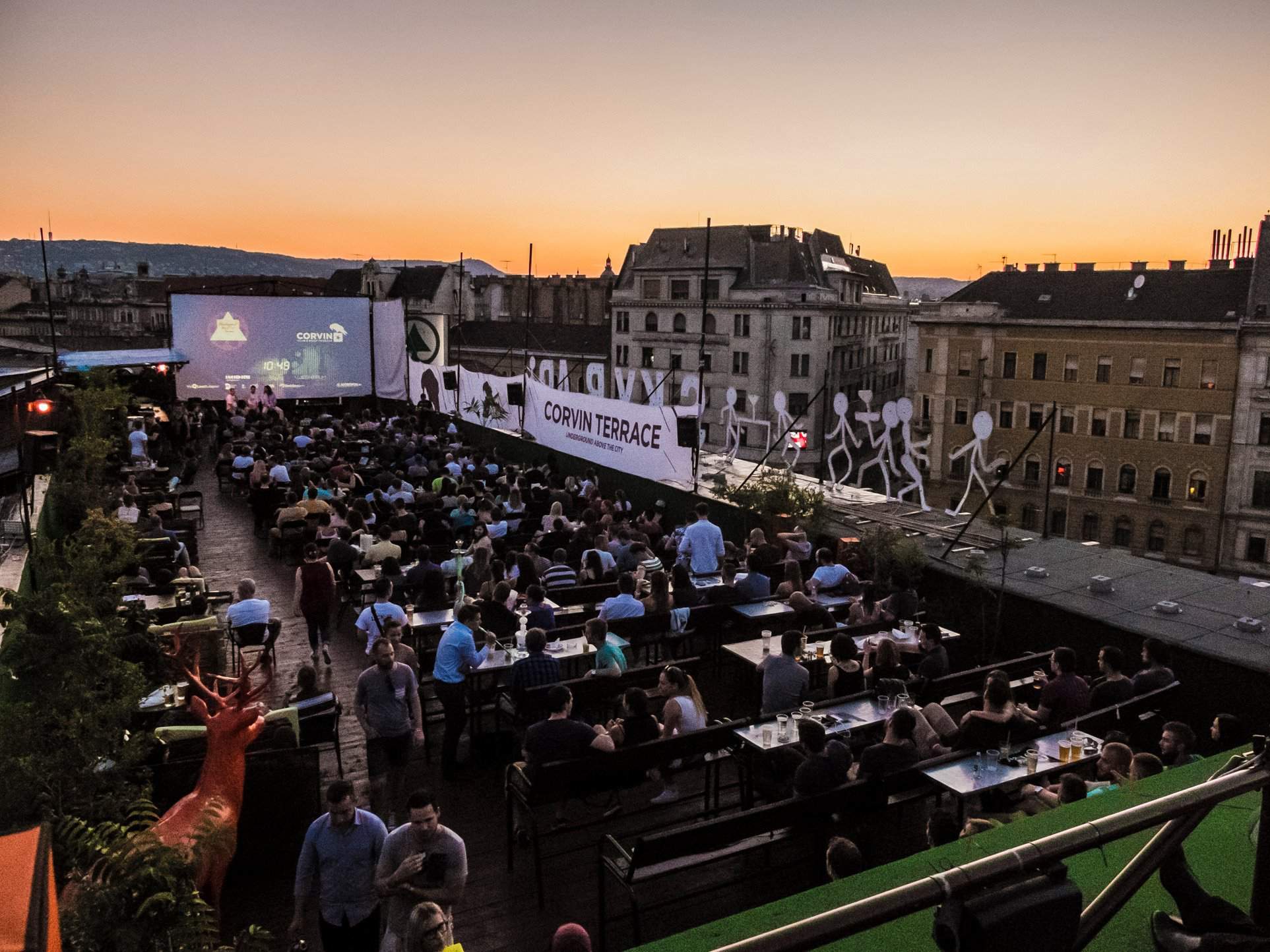 布达佩斯屋顶电影院位于 Corvin Club 顶部,Blaha Lujza Square 1-2。