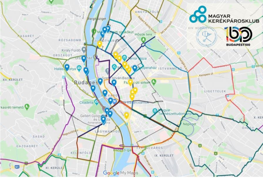 Map上的自行车路线大多重叠或可连通,另外还有几条路线是匈牙利当代建筑中心Budapest100计划中包含的建筑物,Budapest100是庆祝布达佩斯100年历史建筑的民间节日,由志愿者、当地爱国者、镇民组织,旨在“开启传统,引起人们对我们周围的建筑和我们周围每天的人类价值观的关注”