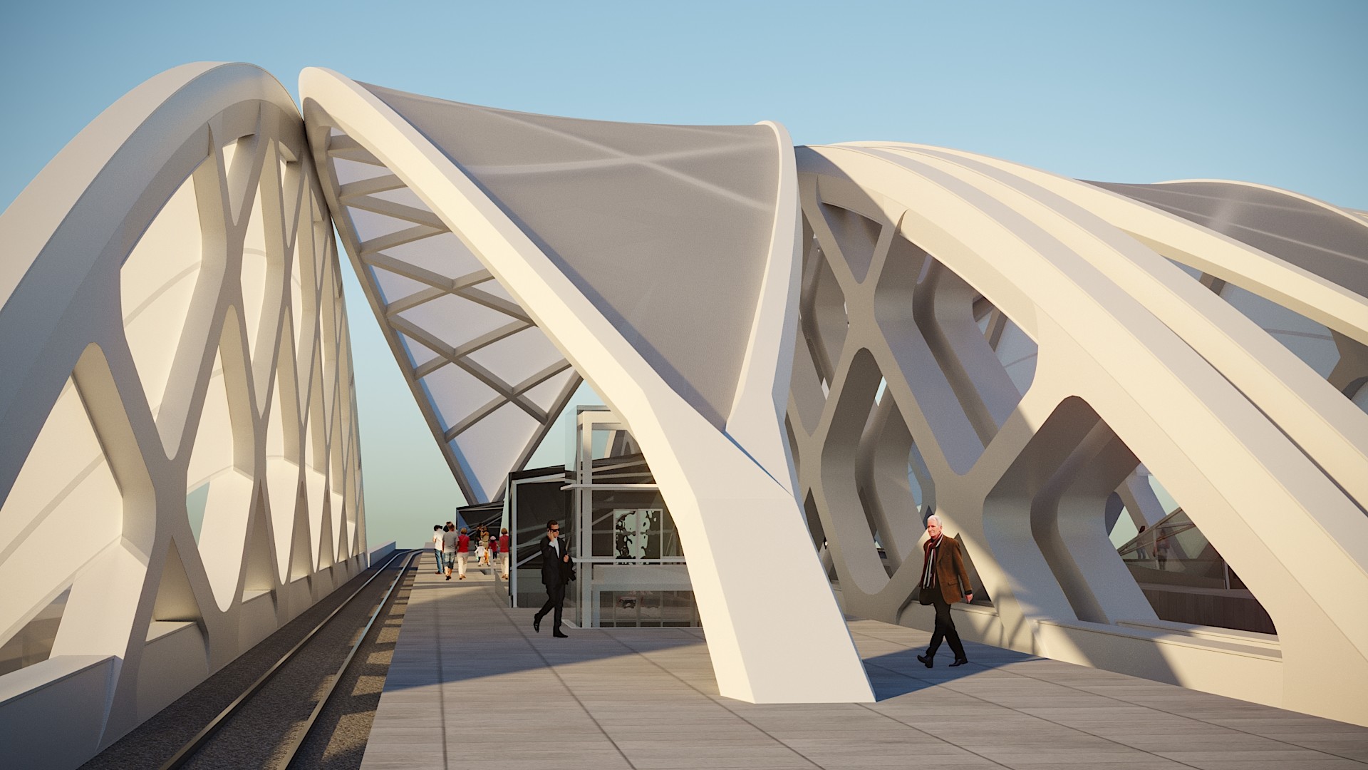 X新设计的主要元素,在2019年12月17日,在2019年12月17日,在2019年12月17日,在2019年12月17日,在2019年12月17日,在2019年12月17日,在2019年12月17日,在2019年12月17日,在2019年12月17日,在2019年12月17日,在2019年12月17日,在2019年12月17日,在201 科兹瓦戈希德站 will be 两座宏伟而优雅的地下通道拱桥, 横跨索罗克萨里 · 乌斯特, 弯曲的支撑系统, 从站台中间开始, 与拱桥两侧的两根主梁相得益彰, 这些弯曲的支撑元素非常有活力, 提供了桥梁的未来感。