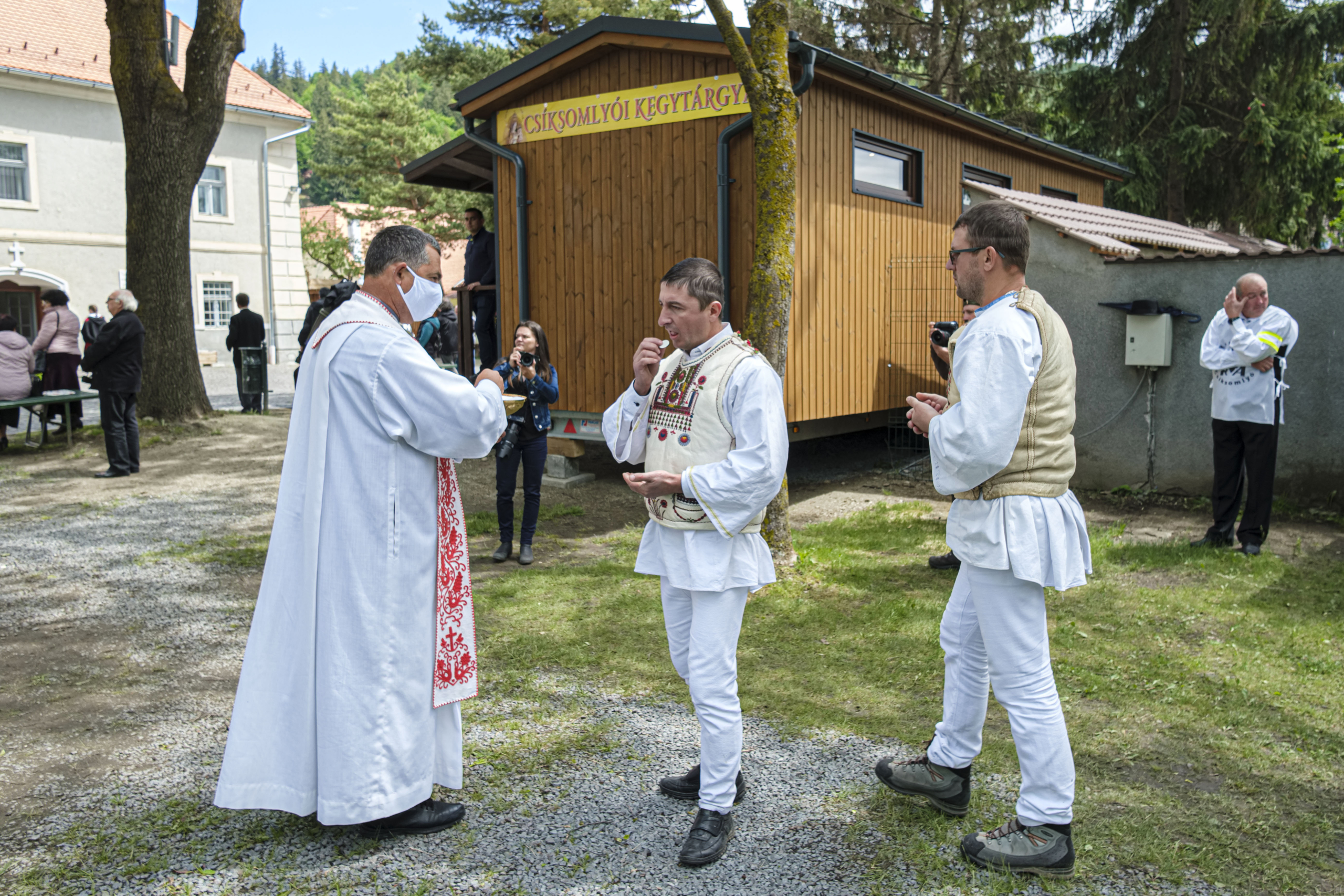 Covid-19大流行,朝圣活动被推迟,信徒的讯息由马和自行车接力传递到神社,根据这一决定,组织者要求信徒们在心中朝圣,加入弥撒和其他礼仪节目,在网上由久拉费埃尔瓦尔总教区总主教格尔盖利 · 科瓦奇(Gergely Kovács)主持的弥撒和布道,并在神社的网站(www。csiksomlyo。ro)、其Facebook页面、SzeredApp应用程序和杜纳电视台进行现场直播。