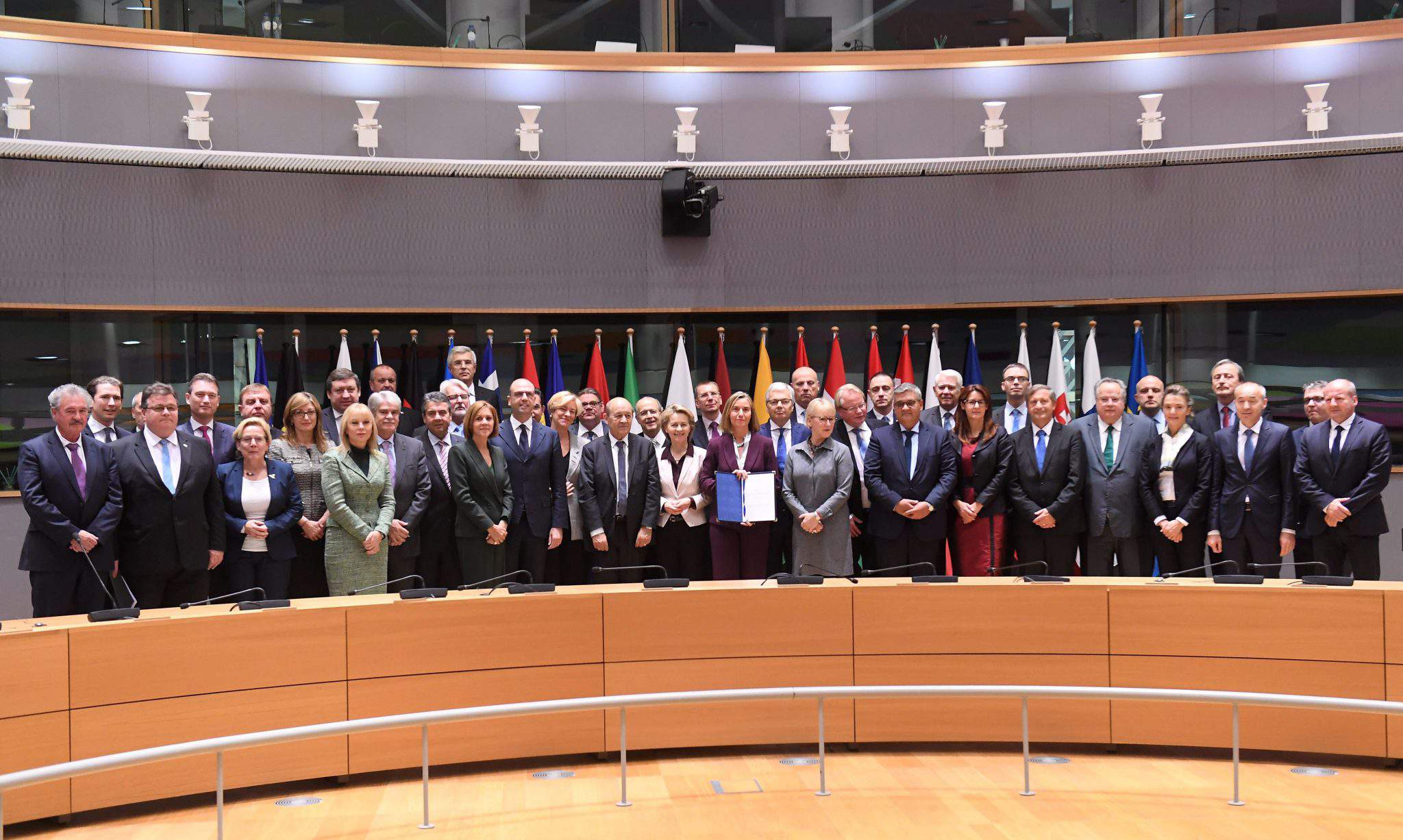周一,来自23个欧盟成员国的部长签署了一份关于建立永久结构性合作组织(PESCO)的联合通知,旨在加强欧盟的国防层面。