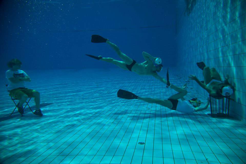 这场比赛由两支六人球队进行 浮潜装备。比赛的目的是将球放入放置在3.5-5米深水底部的篮子形状的球门中。