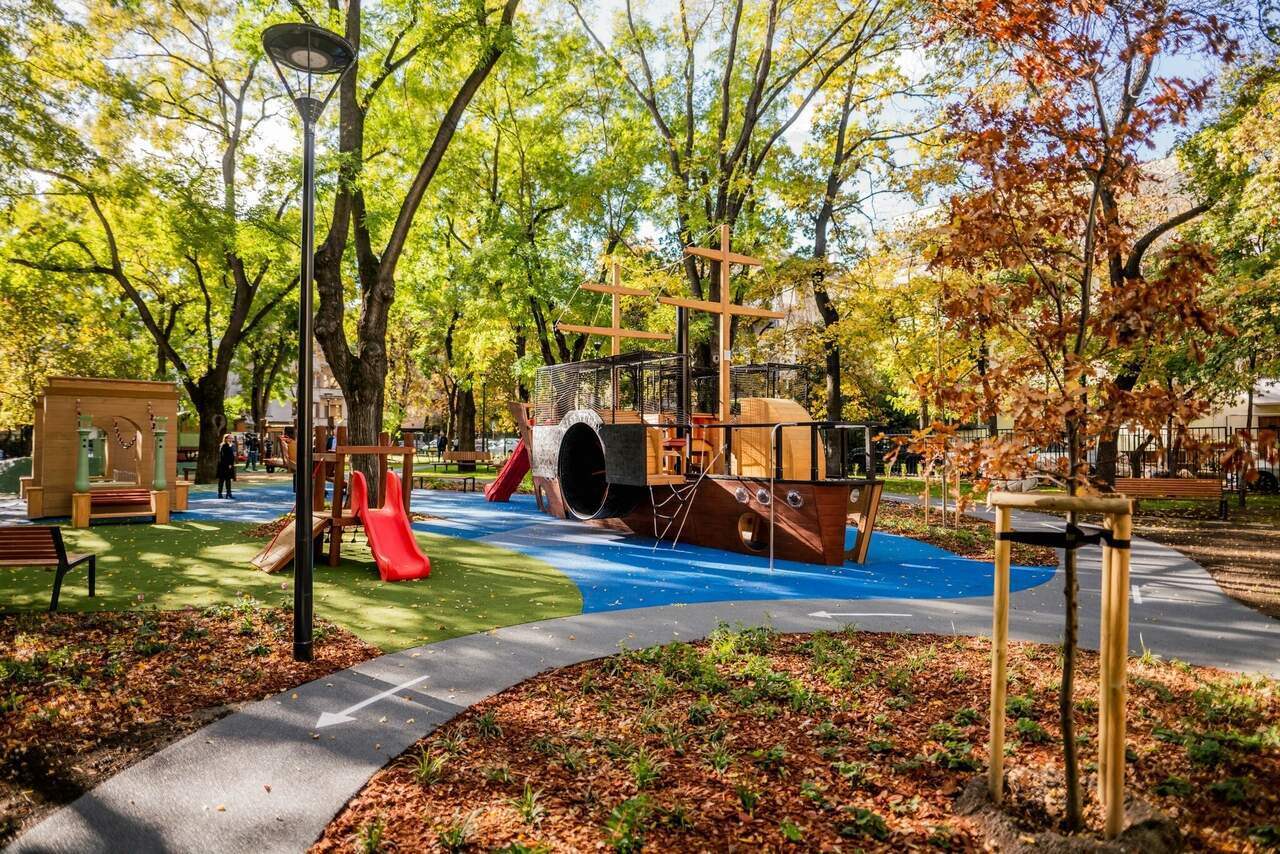 12区布达佩斯新建了一个改革时代的游乐场,其中包括一艘汽船、一座链桥和一个齿轮。