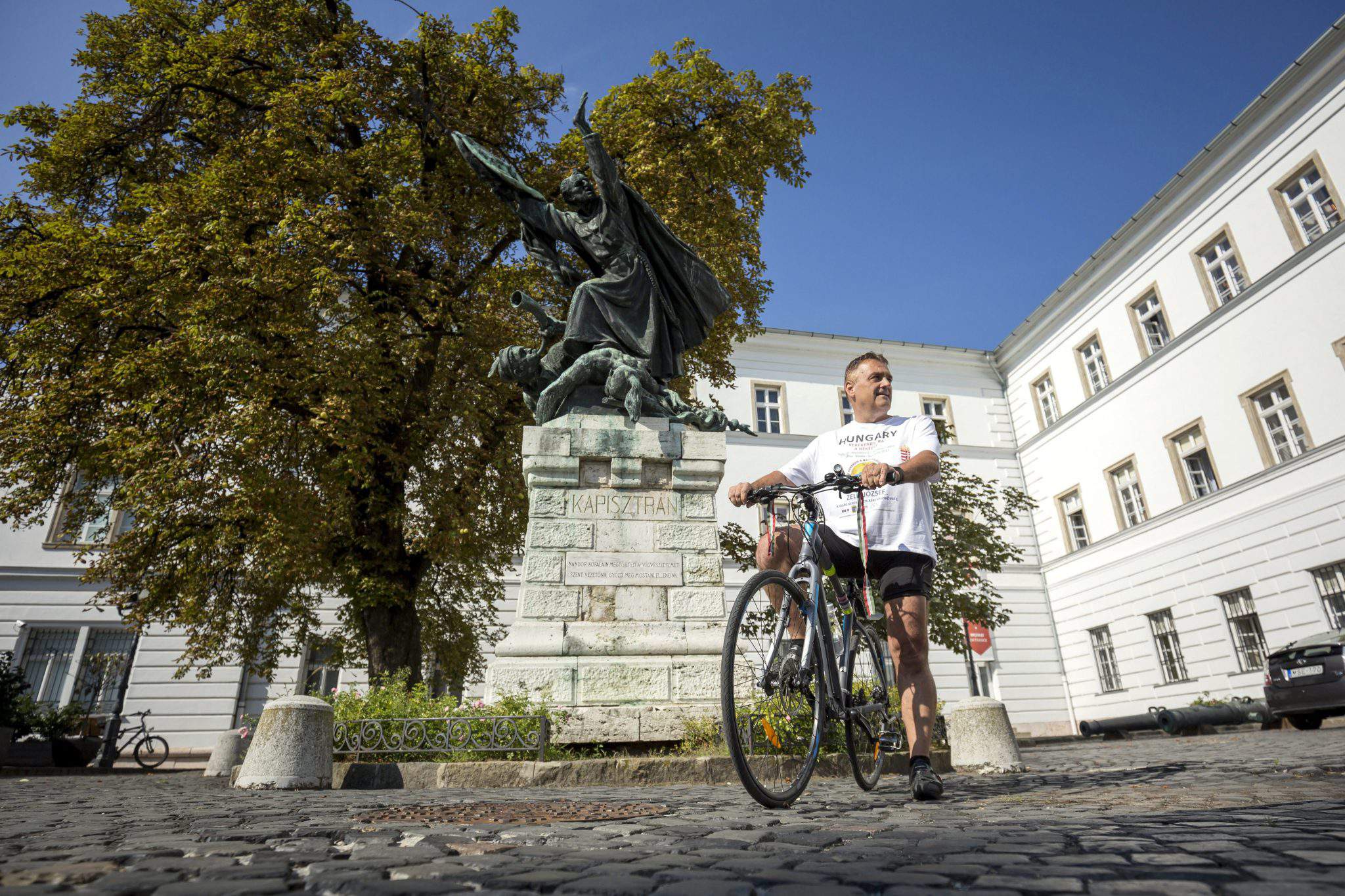 自行车手兼和平大使约瑟夫·泽莱 (József Zelei) 周四出发,从布达佩斯前往撒丁岛北部的意大利阿西纳拉岛,数千名匈牙利战俘被俘,向第一次世界大战期间阵亡的匈牙利士兵致敬。