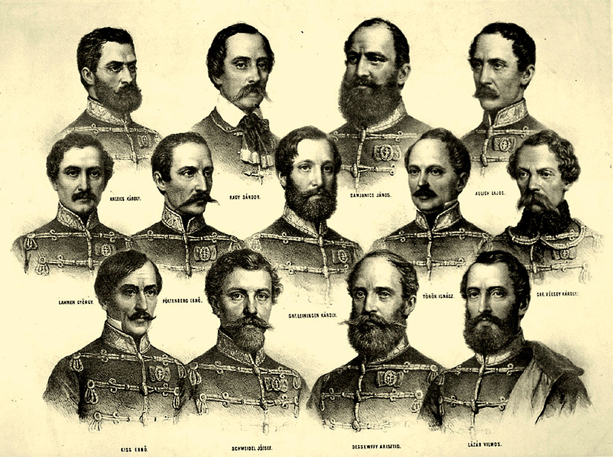 15−20名历史时期的着名士兵,匈牙利是欧洲少数几个能列出其名字至今仍被人们铭记的国家之一,所有匈牙利人都能列出阿拉德(和佩斯)烈士的名字− 拉约什 · 奥利希、雅诺斯 · 达姆贾尼奇、卡罗利 · 克内齐奇、杰尔吉 · 拉纳、卡罗利 · 莱宁根-韦斯特堡、若泽夫 · 纳吉-桑多、埃尔内 · 波尔滕贝格、伊格纳克 · 托勒克、卡罗利 · 韦西、阿里斯蒂德 · 德塞夫菲、埃尔内 · 基斯、维尔莫斯 · 拉扎尔、若泽夫 · 施韦德尔和拉约什 · 巴蒂亚尼−,但是 阿拉德被处决的总人数为 17 人。