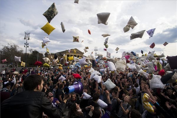 (origo。hu)的说法,英雄广场上聚集了数百人,庆祝国际枕头大战日,并用羽毛覆盖广场,主办方提前展示了通常的规则:只有同样有枕头的人才能打,只有软枕头的人才能打,除了世界其他几个城市,枕头战士可以在匈牙利的布达佩斯、米什科尔茨、德布勒森、松博特海伊、塞克舍费尔瓦尔和瓦茨。 Megaphone字开始战斗,参与者互相照顾,趁着玩,短时间内,羽毛覆盖广场,国际枕头大战日关键信息:做枕头大战,而不是战争! 基于origo。hu的文章 BA翻译的 照片:MTI