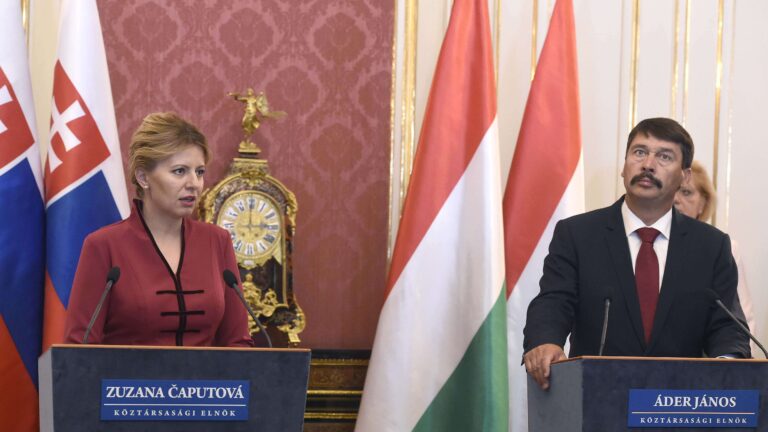 气候变化、移民和能源问题是匈牙利总统雅诺斯·阿尔德和斯洛伐克总统祖扎娜·卡普托娃周四在布达佩斯会谈的核心。 在总统桑多尔宫的会谈中, 阿德强调,世界”十一时”正在采取行动应对气候变化。 两国领导人一致认为,核能的使用对于实现气候保护目标不可或缺。 关于移民,阿德和卡普托娃都强调了预防的重要性。 卡普托娃强调了她竞选时承诺努力担任总统 斯洛伐克‘s 450,000 名匈牙利公民。 她说,她坚信,保障每个公民平等权利的自由民主是保护少数群体的最佳方式。 Visegrad集团的合作,卡普托娃说,该集团不应满足于捍卫公正的地区利益,还应捍卫法治、民主和自由原则等价值观,这一点很重要,她说,“这样我们就不会被视为削弱和扰乱欧盟”。 关于经济合作主题,她强调工业自动化和机器人化是最有前途的领域。 Caputova表示,令人遗憾的是,欧盟最高领导人首次没有一个来自维谢格拉德集团国家之一。 但斯洛伐克、匈牙利、捷克共和国和波兰因其公民对其国家加入欧盟的积极看法而团结在一起,她补充道。 在回答问题时,卡普托娃对德国总统乌苏拉·冯德莱恩当选欧盟委员会主席表示欢迎。 阿德表示支持冯德莱恩,条件是她在奥地利反对升级的情况下帮助匈牙利和斯洛伐克扩大核电站的产能。 alder强调匈牙利将实现2030年的气候目标,此外,他还表示,到这个日期使匈牙利90%的电力生产无二氧化碳也是一个重新定位的目标,前提是paks核电站的升级到那时完成,匈牙利的太阳能产能每年翻一番。 Caputova表示,斯洛伐克发誓到2050年实现“气候中性”,到2023年实现无碳”。 Ader在回答一个问题时,形容他与卡普托娃的会面是“极其友好”,他补充说,虽然他们的国家将来可能会出现分歧,但绝不会危及维谢格拉德集团的合作。 Caputova呼应了阿德的观点,称合作伙伴有时不同意是很自然的,在回答另一个问题时,她打着”“lies”的品牌在匈牙利媒体上报道说她是美国金融家乔治索罗斯的”“代理人”。 斯洛伐克总统后来计划与总理维克托 · 奥尔班举行会谈,并在匈牙利前总统阿尔帕德 · 冈茨的坟墓前向她致敬,她称赞冈茨“体现了自由和民主的价值观”。 斯洛伐克罪犯罗哈克承认 90 年代谋杀了商人普里什塔斯