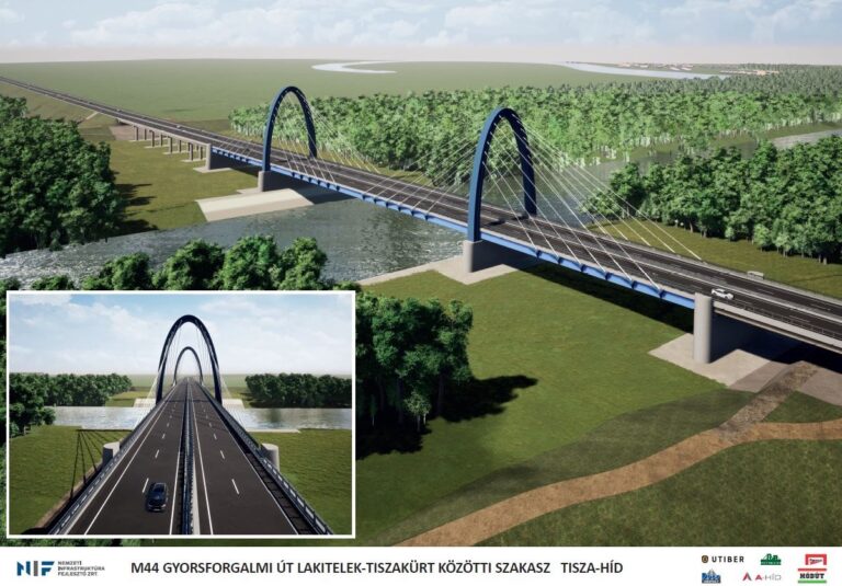 M44高速公路的蒂萨大桥的建设工程进展顺利,进行施工的公司Duna Aszfalt分享了一段关于大桥进展的壮观视频,其结构在欧洲是独一无二的。 据 奥里戈, 去年十一月 标(marked)的建设里程碑,因为桥的两部分最终在中心交汇,建设项目与拉基泰莱克和蒂扎库尔特之间的m44公路10公里路段的建设有关,该路段将由nemzeti Infrastruktúra Fejlesztro Zrt投资实施(国家基础设施发展公司)。 Tiszaug的桥梁的特殊之处在于其独特的结构,迄今为止欧洲还没有建造过其他桥梁,世界上也只有少数类似的桥梁存在。 大桥全长556米,其中307米长的路段提供河上交通。 承包商发布了一段关于专门设计的桥梁作品的视频: 架(pylons)呈变形的椭圆形,使得桥的外观非常独特,结构让人联想到有盖的货车,桥面会以扇形自由缆线排列方式附在桥架上,桥架最终高度为41.6米。