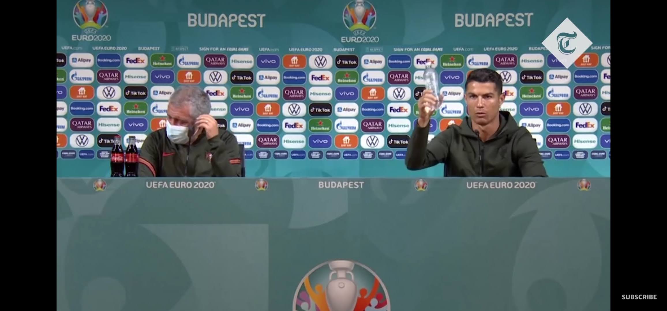 这正是周一发生的事情 在匈牙利-葡萄牙比赛之前举行的在线新闻发布会。葡萄牙球星兼国家队队长C罗做了一些非常简单的动作:他坐下来,看着前面两个可口可乐瓶子,气得满脸怒色,把瓶子收起来,并抓住自己带的水瓶子,并附上了“阿瓜”两个字, 明确表示他更喜欢 纯饮料大自然给我们带来的不是生产的软饮料。