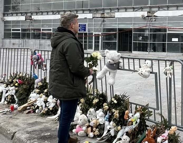 蒂萨领导人彼得·马扎尔在塞尔维亚诺维萨德火车站献花