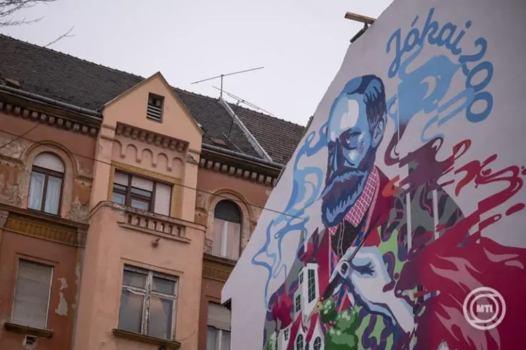 匈牙利著名作家约凯在布达佩斯市中心的壮观壁画上受到纪念 – 照片