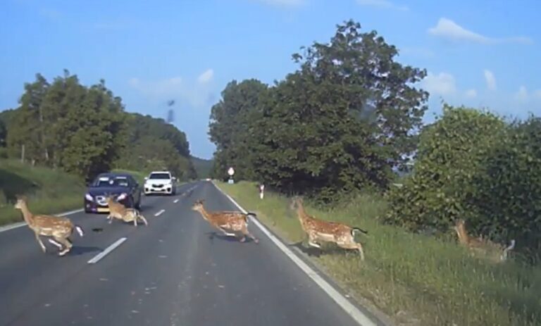 戏剧性视频:一辆汽车与一群鹿相撞