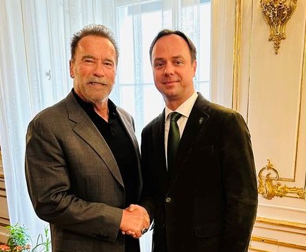 照片:匈牙利政治家遇见阿诺·施瓦辛格
