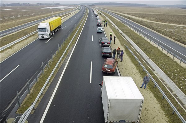 针对匈牙利西部新收费的路障演示