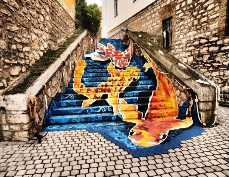 防火墙和楼梯上有数千种颜色