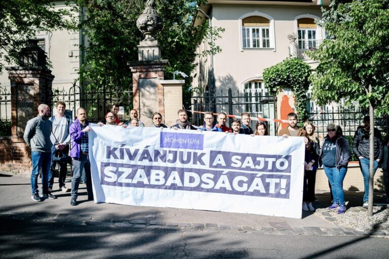 PHOTOS: Opposition Momentum painted red and blocked the Sovereignty Protection Office in Budapest