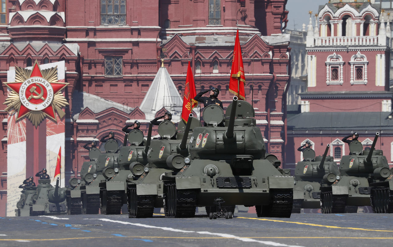 Putin的演讲之后,举行了约14,000名士兵和200多台军事硬件的阅兵式,其中包括红军使用的传奇T-34坦克,以及现代坦克和导弹系统。