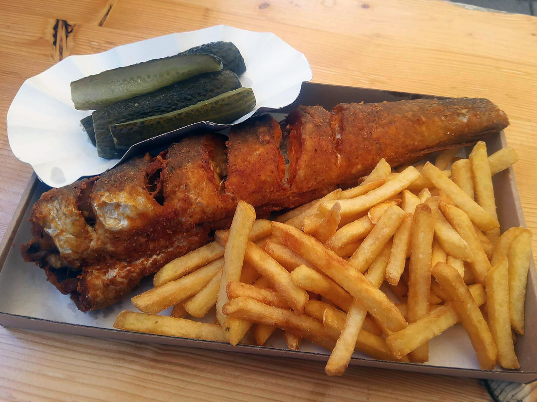 Hekk (Seehecht) ist ein beliebtes Straßengericht am Balaton und an anderen Seen in Ungarn. Dieser Fisch mit weißem Fleisch, in der Regel importierter Seehecht, wird frittiert, bis er goldgelb und knusprig ist, und dann einfach mit einer Scheibe Brot, Zitrone und oft einigen eingelegten Beilagen serviert. Er ist der Inbegriff eines sommerlichen Leckerbissens, der besonders auf Strandbuffets und Volksfesten beliebt ist. Die ungarische Esskultur macht Hekk zu einem unprätentiösen, aber geschätzten Klassiker der saisonalen Küche. Wir empfehlen Ihnen dieses Gericht, wenn Sie sich am Plattensee entspannen oder anderen Strandaktivitäten nachgehen!