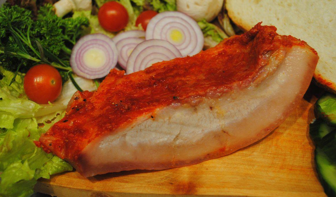 Das beste traditionelle ungarische Landessen während der Wintersaison: gekochter Speck!