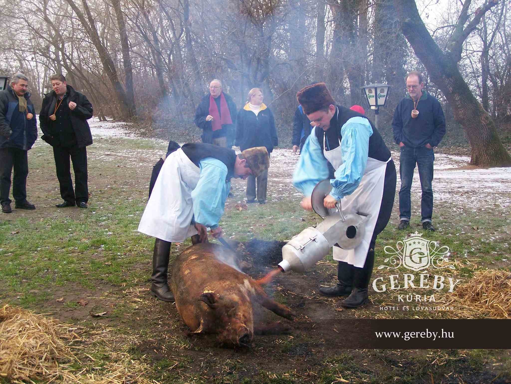 Ein Fest, das früher zu Disznóvágás gehörte, bei dem Familienmitglieder und Freunde kostenlose Schweinefleischgerichte serviert wurden, und Orte wie Gedeon Tanya in Bugac oder Árpád Pálinkatanya in Békéscsaba beleben diese Tradition wieder. Gedeon Tanya lädt Besucher zwei- oder dreimal im Winter zu einem Fest ein und bietet traditionelle Spiele, Kutschenfahrten mit ungarischem Grauvieh oder sogar Schlitten auf einem Pferdeschlitten an. Natürlich bieten Gastgeber Pálinka und Glühwein an, die notwendigen Props von Diszóvágami, die sich traditionell als Besucher entladen fühlen, können die wenigen Schüsse davon loswerden.