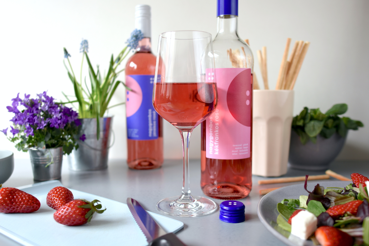 Zur Grundlinie Nagygombos Játekos Rosé gehört eine Mischung, die bestrebt ist, die Vorzüge mehrerer verschiedener Sorten zu vereinen und durch geschicktes Mischen ihrer Komponenten Ausgewogenheit und Aromakomplexität zu erreichen. Nagygombos Kekfrankos Rosé zeigt die Eleganz der Sorte und ist ein Jolly Joker, wenn es darum geht, mit Lebensmitteln in Einklang zu kommen.