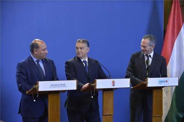 Das Memorandum of Understanding (MoU), in dem sich Ungarn zur Senkung der Bankabgabe verpflichtete, wurde von Orban, Treichl und EBWE-Präsident Suma Chakrabarti unterzeichnet.