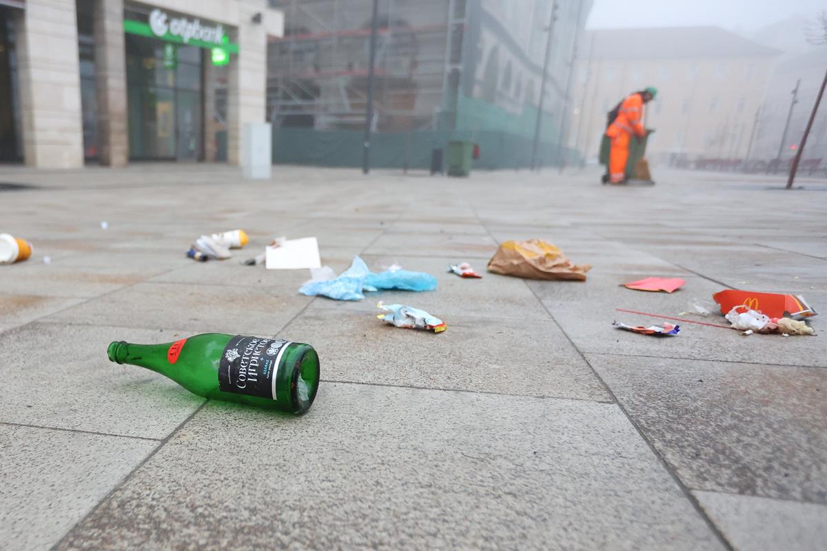 Silvesterfeiernde hinterließen riesige Mengen Müll auf den Straßen Budapests