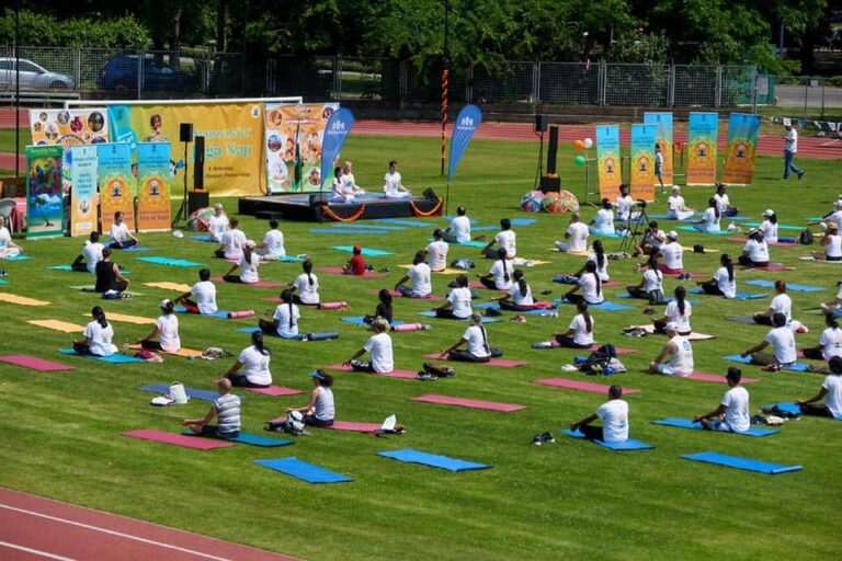 PHOTOS: Hunderte feiern den Internationalen Tag des Yoga in Budapest mit einer großen Open-Air-Session