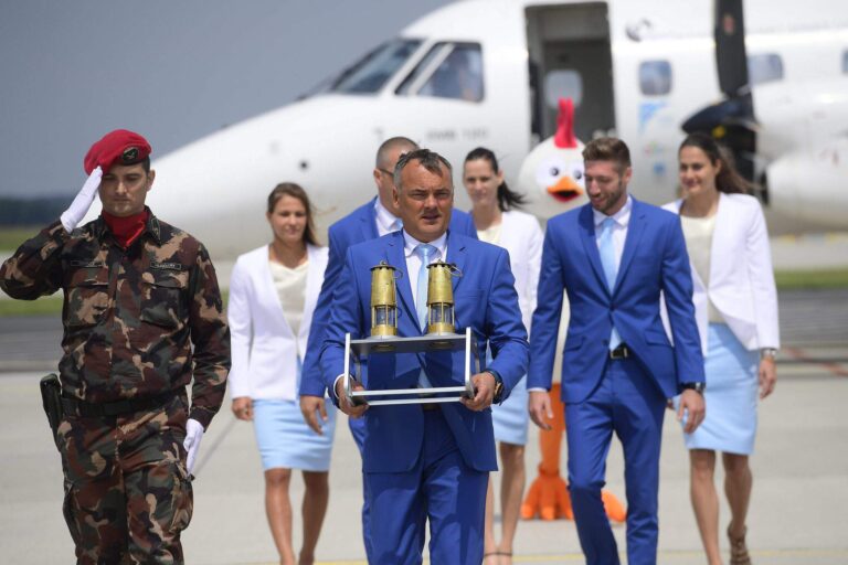 Das Feuer des Olympischen Jugendfestivals kommt in Gy inr an