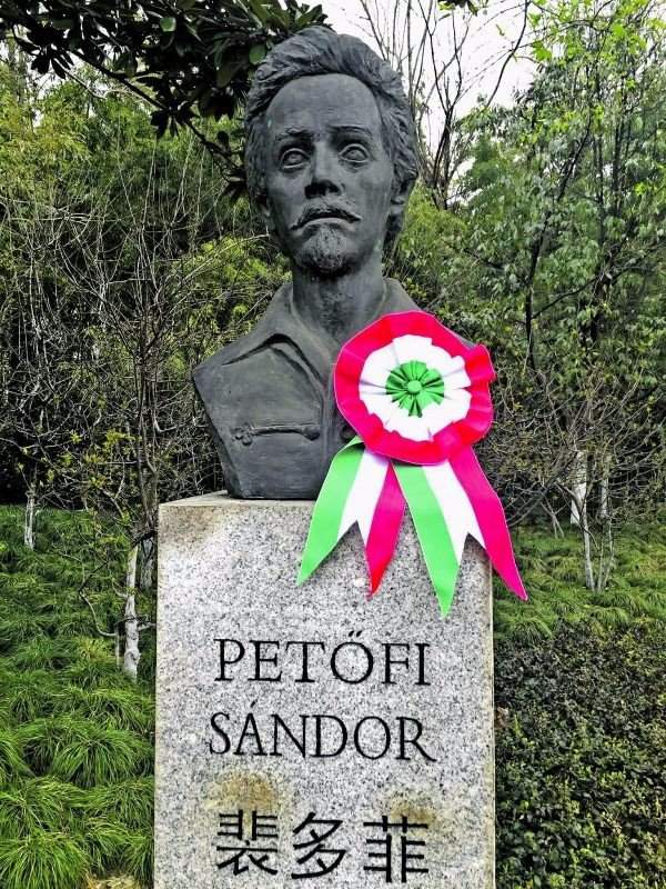Statue des Dichters Sándor Pet offi im Shanghai Lu Xun Park enthüllt