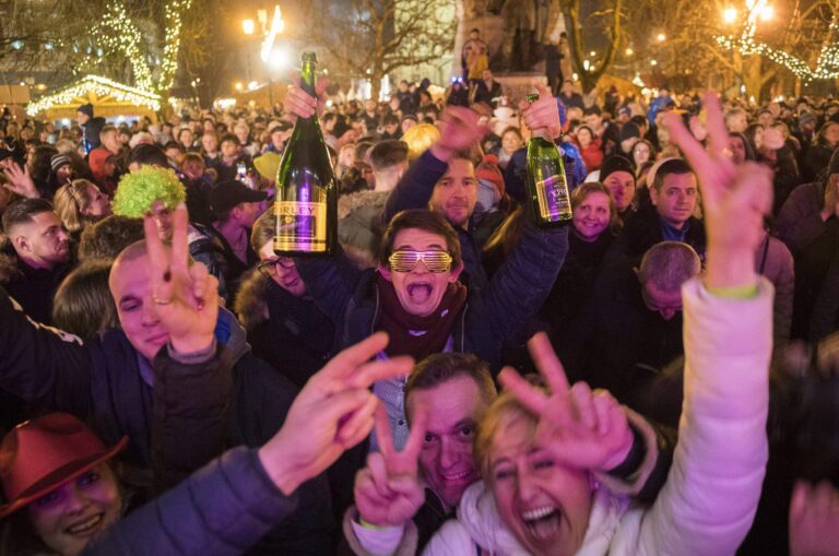 Silvesterfeierlichkeiten, da 2017 auf 2018 umschlägt – Fotos aus Ungarn