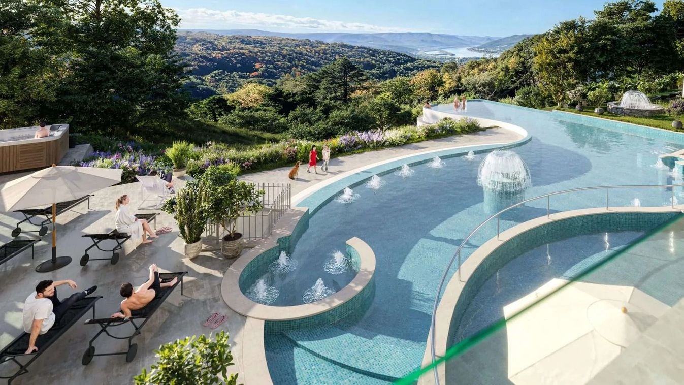 Neben dem Hotel Silvanus entsteht ein Wellness-Außenpool mit einzigartigem Panoramablick, der in Europa seinesgleichen sucht. Dieser Pool erstreckt sich mit einer innovativen Struktur-Kooperationslösung bis in den Hang von Visegrád.