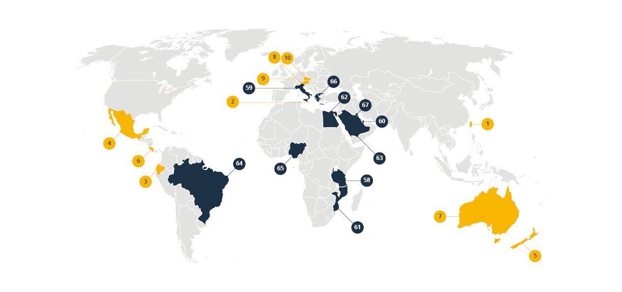 Das soziale Netzwerk InterNations vereint mehr als 2,3 Millionen Expatriates aus aller Welt, die ihre Erfahrungen aus dem Ausland miteinander teilen können, für das dritte Jahr haben sie eine Liste der besten und schlechtesten Länder für Expats veröffentlicht.2016 belegte die Liste Platz 67 Länder basierend auf dem Feedback von 14.000 Teilnehmern, die 174 Nationalitäten aus 191 Ländern und Territorien repräsentierten.