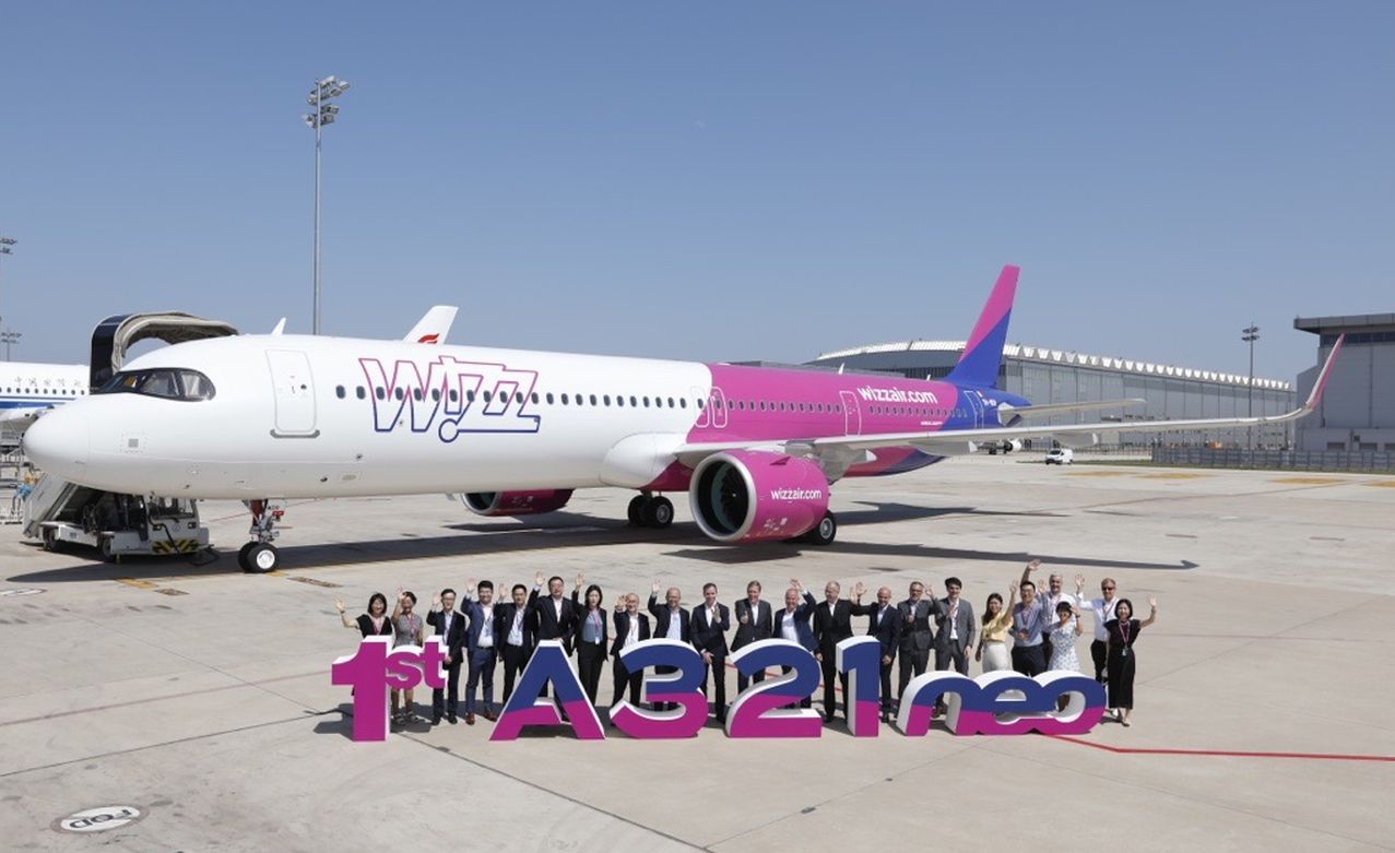 Wizz Air, Europas am schnellsten wachsende und nachhaltigste (1) Fluggesellschaft, übernimmt als erste europäische Fluggesellschaft ein in China gefertigtes Airbus A321neo-Flugzeug, der in Tianjin gebaute Neuzugang der Flotte wird vier Jahre nach der Übernahme des ersten seiner Art von Wizz Air begrüßt.