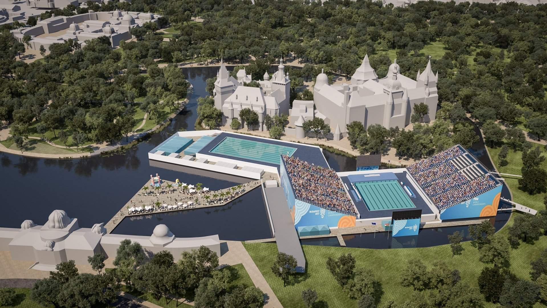 Das Dagály-Zentrum bietet Platz für 12.000 Besucher und der Hajós-Alfréd-Komplex bietet Platz für 8.000. Es wird 1.200 Sitzplätze für Tauchveranstaltungen an einem Veranstaltungsort am Donauufer, 4.000 im Stadtpark und 1.300 in Balatonfured geben, wo Freiwasserschwimmveranstaltungen stattfinden werden.