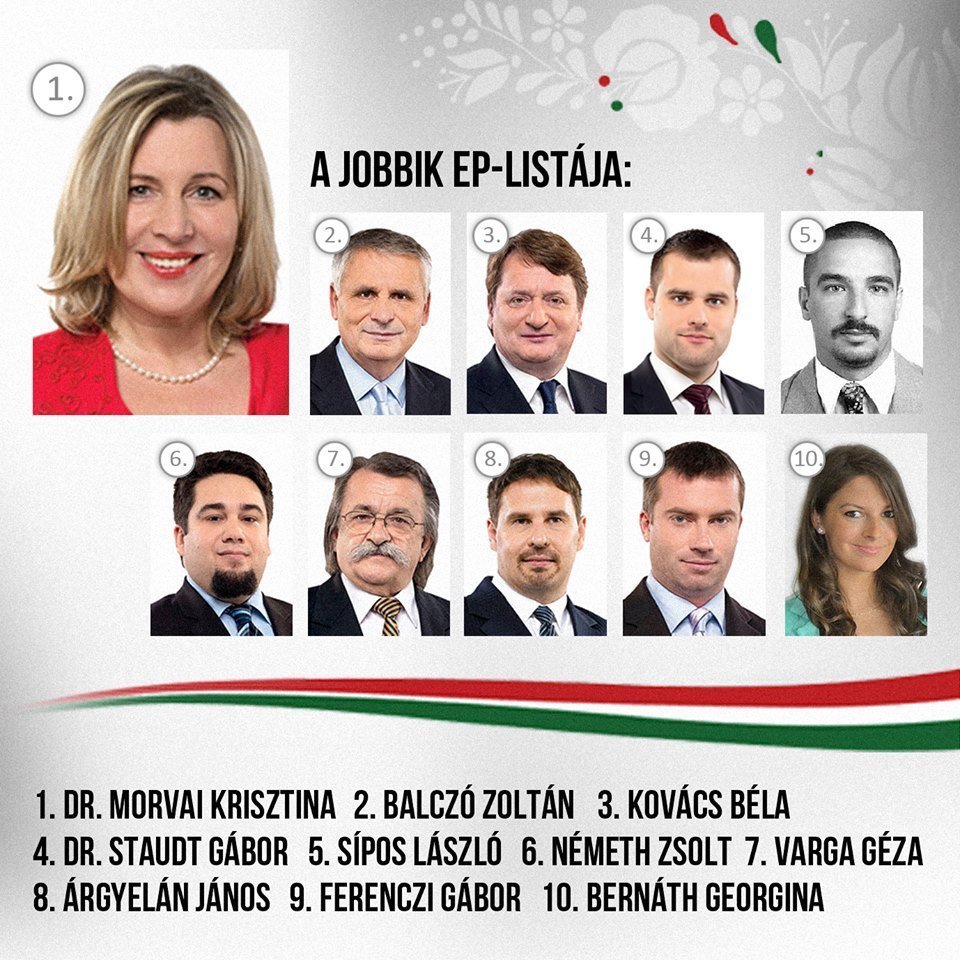 Il presidente della destra radicale Jobbik, Gabor Vona, ha presentato mercoledì i candidati del partito al Parlamento europeo Al primo posto della nuova lista c’è Krisztina Morvai, attuale eurodeputata di Jobbik, Morvai è seguito da Zoltan Balczo, Bela Kovács e Gabor Staudt Kovacs è un politico esperto di Jobbik che rappresenta il partito al Parlamento europeo dal 2009, mentre Balczo avrebbe iniziato il suo primo periodo a Bruxelles. In precedenza era vice-presidente del parlamento ungherese.