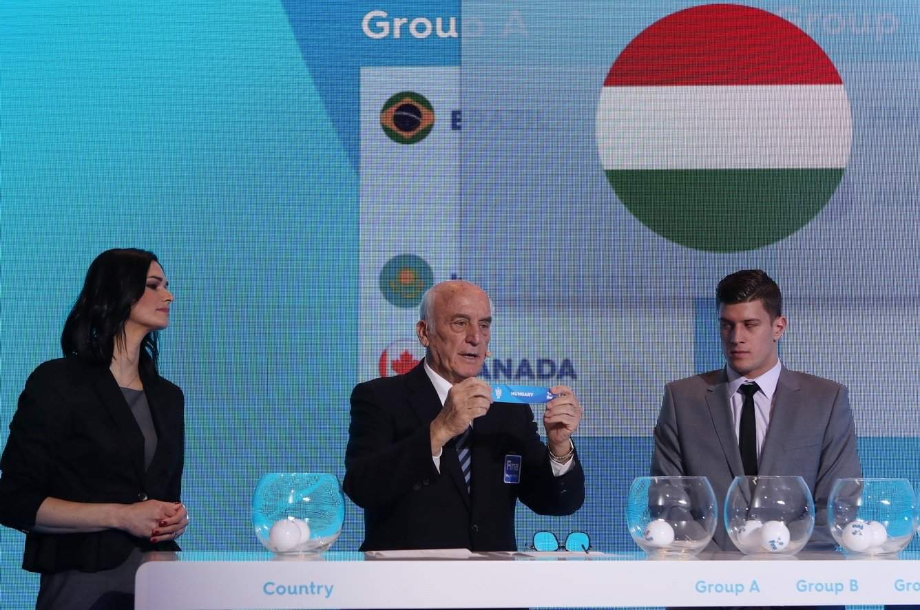 La cerimonia del sorteggio della FINA e del Comitato Organizzatore dei 17° Campionati del Mondo è stata aperta con calorose parole di benvenuto di Tamás Gyárfás. Alla cerimonia hanno accompagnato grandi interessi, diversi allenatori erano presenti: Dejan Savic (Serbia), Ivica Tucak (Croazia), Giuseppe Porzio (Canada), Dejan Udovicic (Stati Uniti) e Alessandro Campagna hanno preso parte al sorteggio.