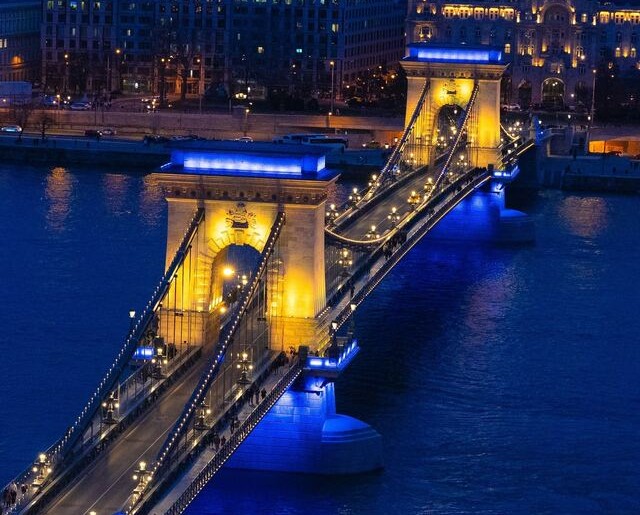 Fidesz ritiene “oltraggioso” che il Ponte delle Catene di Budapest sia stato illuminato con i colori ucraini