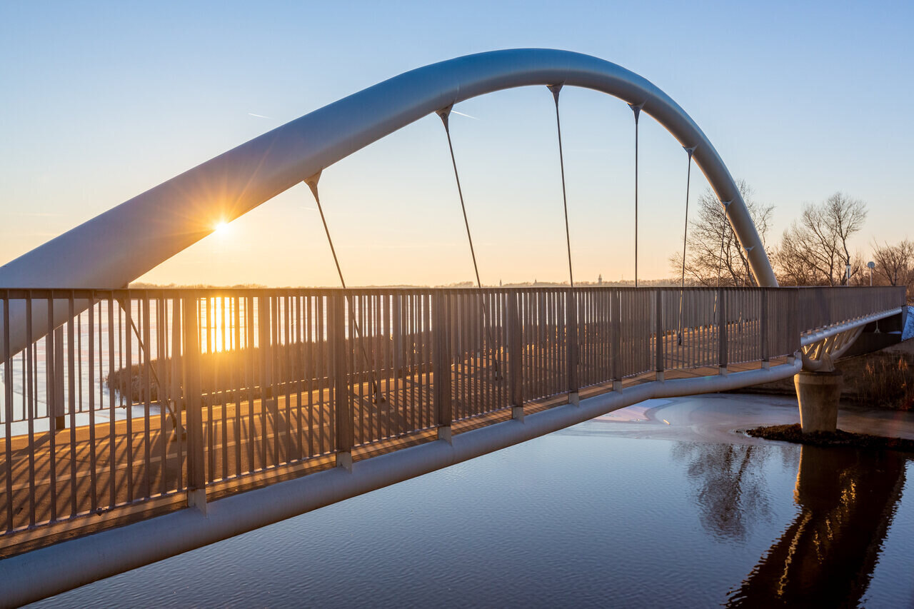 La pista ciclabile Poroszló-Tiszafüred è stata costruita separatamente dal traffico stradale Grazie allo sviluppo, l’intero lago può ora essere pedalato in sicurezza intorno Il progetto dei ponti si basa su una geometria ad onda continua che ricorda il lago.