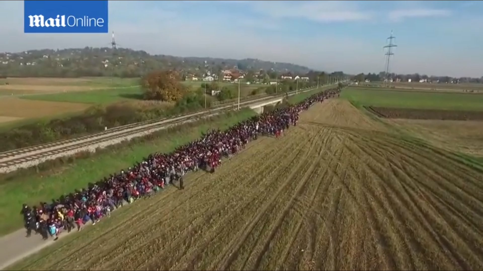 Il filmato del drone mostra la colonna dei migranti in Slovenia VIDEO