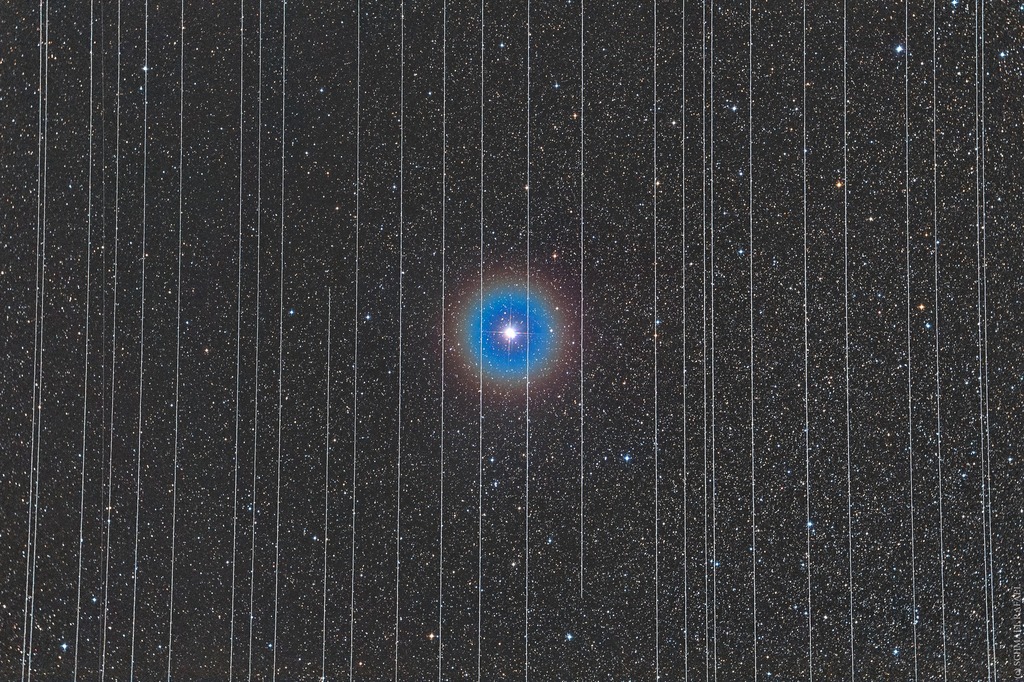 Le linee bianche visibili sulla fotografia sono satelliti, e migliaia di essi possono essere trovati intorno all’atmosfera del pianeta Terra Solo Elon Musk prevede di installarne altri 10.000 nello spazio Il messaggio è che non importa quanto moderni telescopi l’umanità crei, sarà difficile e impegnativo fare ricerca scientifica perché migliaia di satelliti disturberanno la nostra visione.