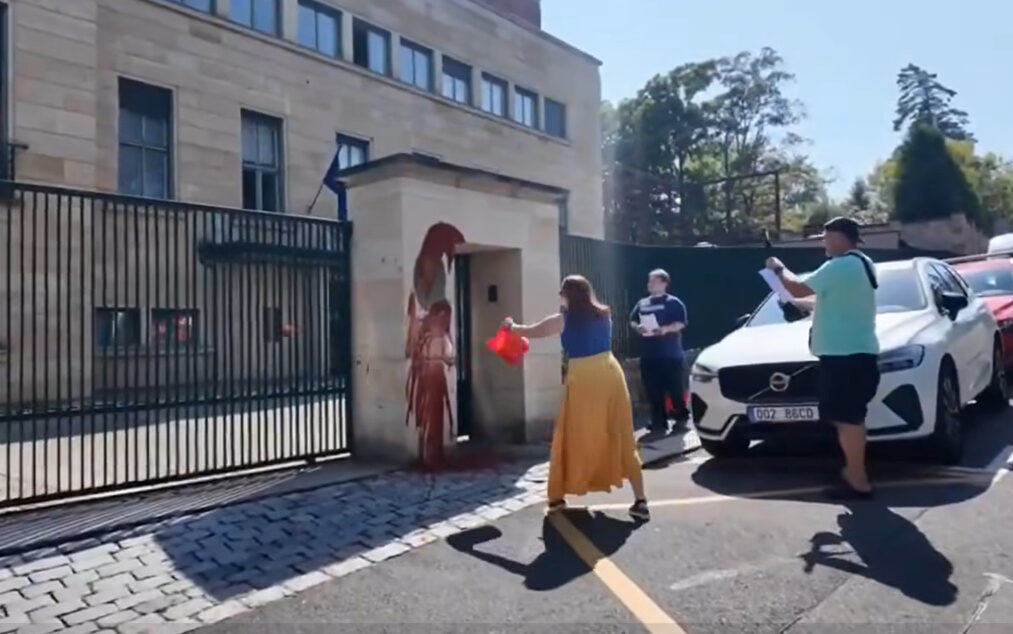 Due attivisti civici cechi, conosciuti con gli pseudonimi “Pražský Pérák” e “Bohemian Queen”, hanno versato della vernice rossa sulla recinzione dell’ambasciata ungherese a Praga.