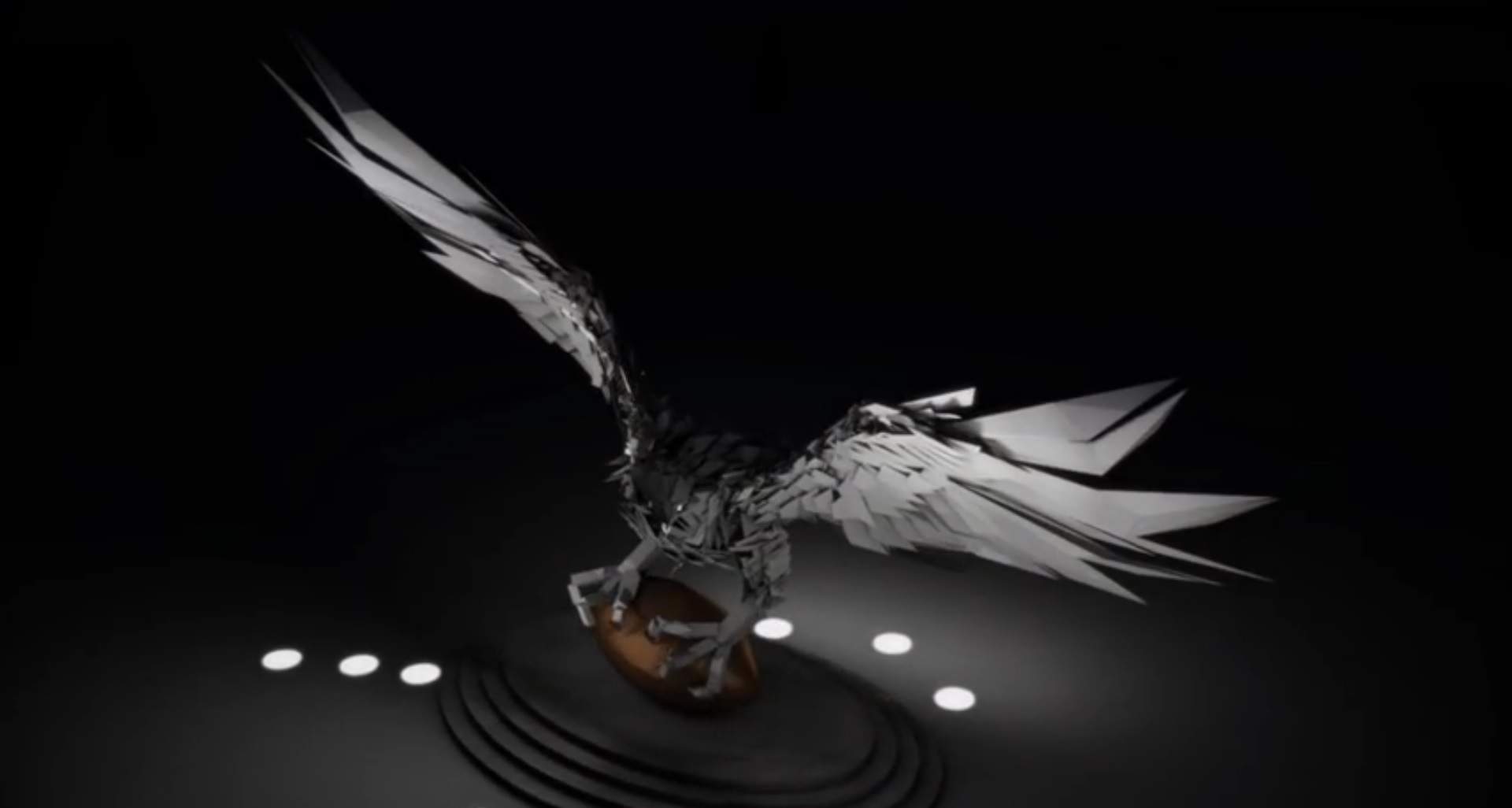 La base della scultura sarà in cemento; l’uccello sta su un pallone da calcio, realizzato in bronzo; l’uccello stesso sarà costituito da elementi in acciaio inossidabile.