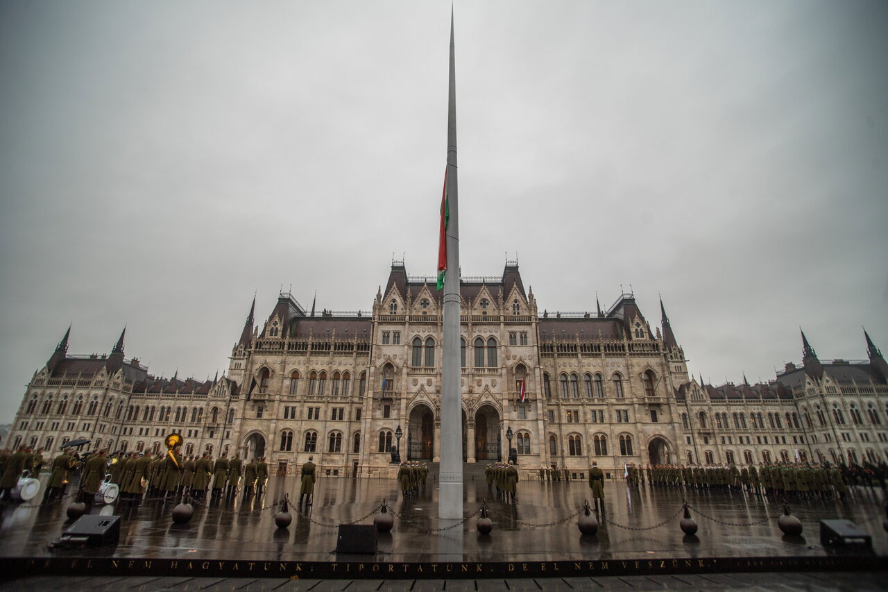 La bandiera dell’Ungheria è stata issata e abbassata a mezz’asta davanti al Parlamento giovedì mattina, in commemorazione del 65° anniversario della sconfitta della rivolta del 1956 contro il dominio sovietico.