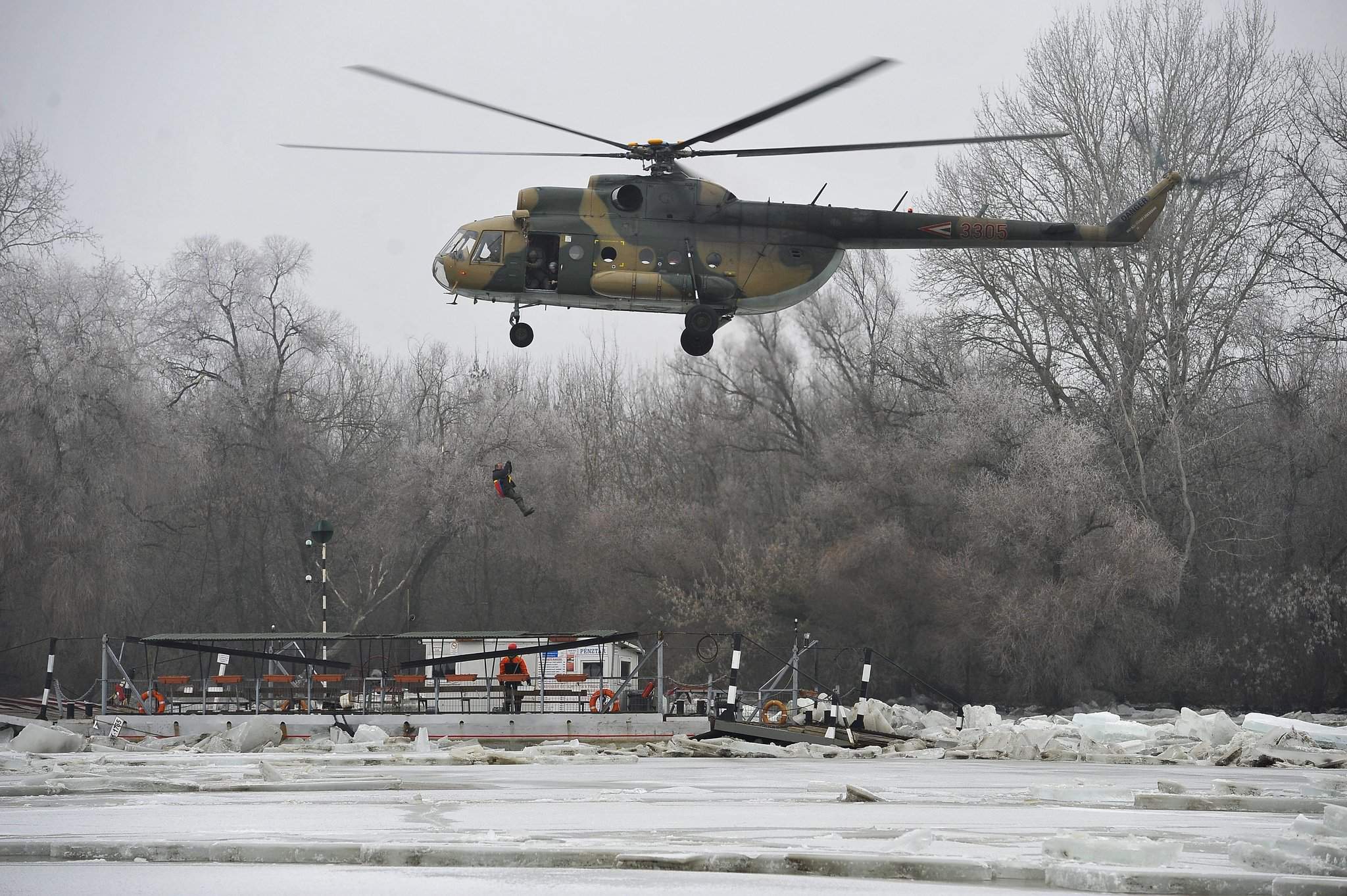 János lavorava sul traghetto a Tiszacsege quando il ghiaccio alla deriva ha rotto le corde, quindi il veicolo è stato spazzato via a 500 metri dal fiume ghiacciato. Lo sfortunato impiegato è stato salvato dall’elicottero delle forze di difesa ungheresi. Sono state scattate delle foto e un video ha anche registrato la storia: